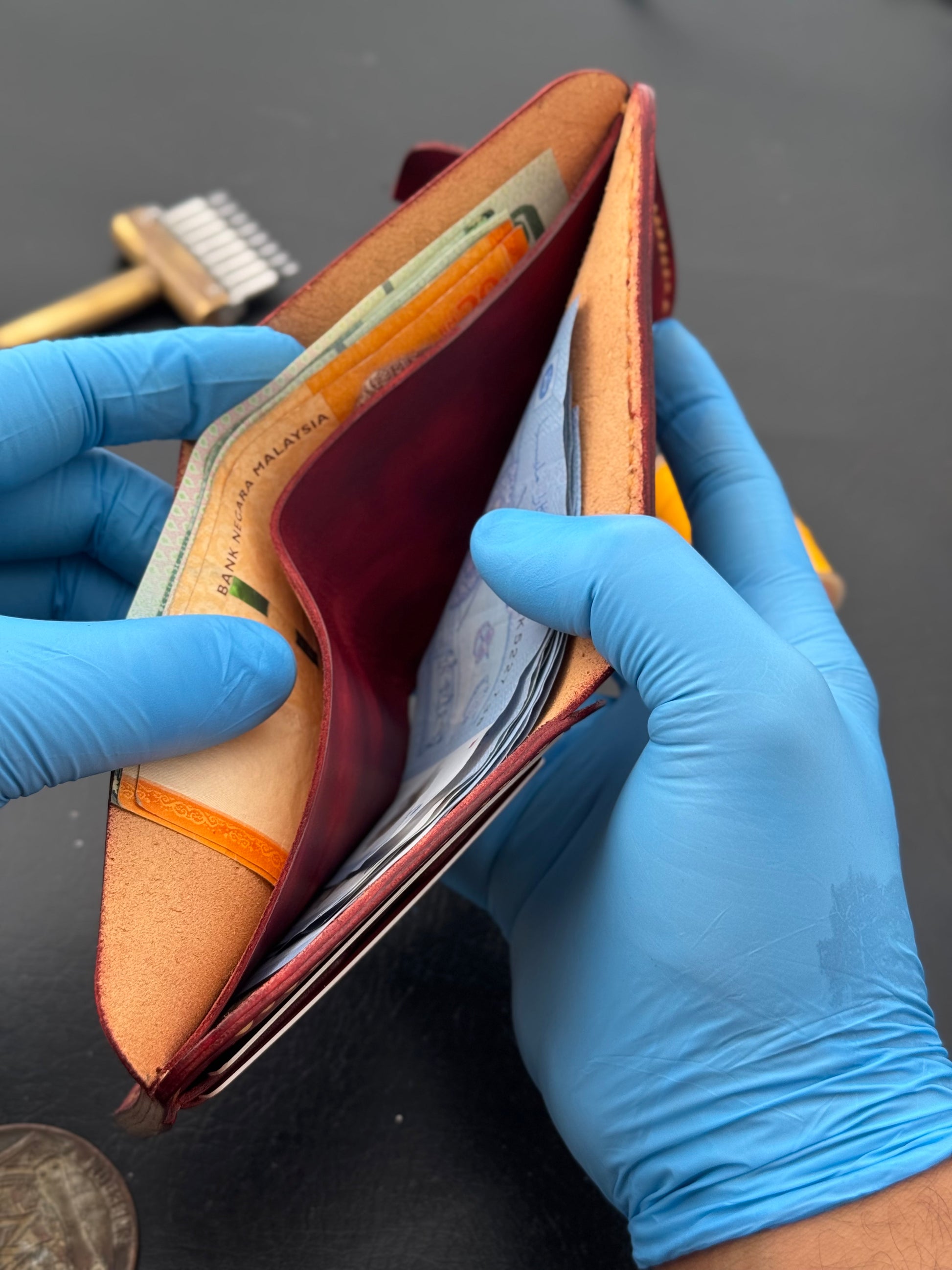 A bold everyday carry piece for anyone who wants something unique, handmade, and genuinely premium. Each wallet is carved from full-grain cow leather and hand-dyed in a rich red tone, then stitched with durable Japanese thread for a long-lasting finish. It’s compact, practical, and made to age beautifully the kind of piece that becomes “your” wallet over time.