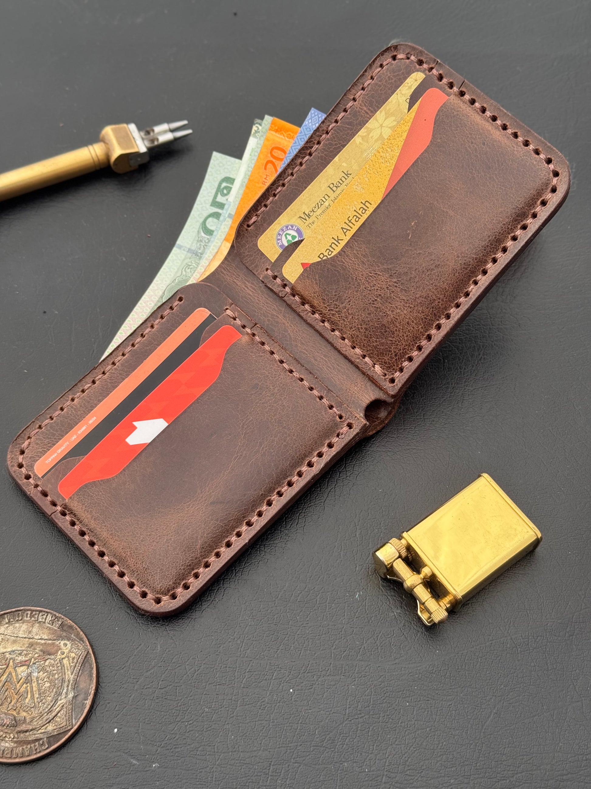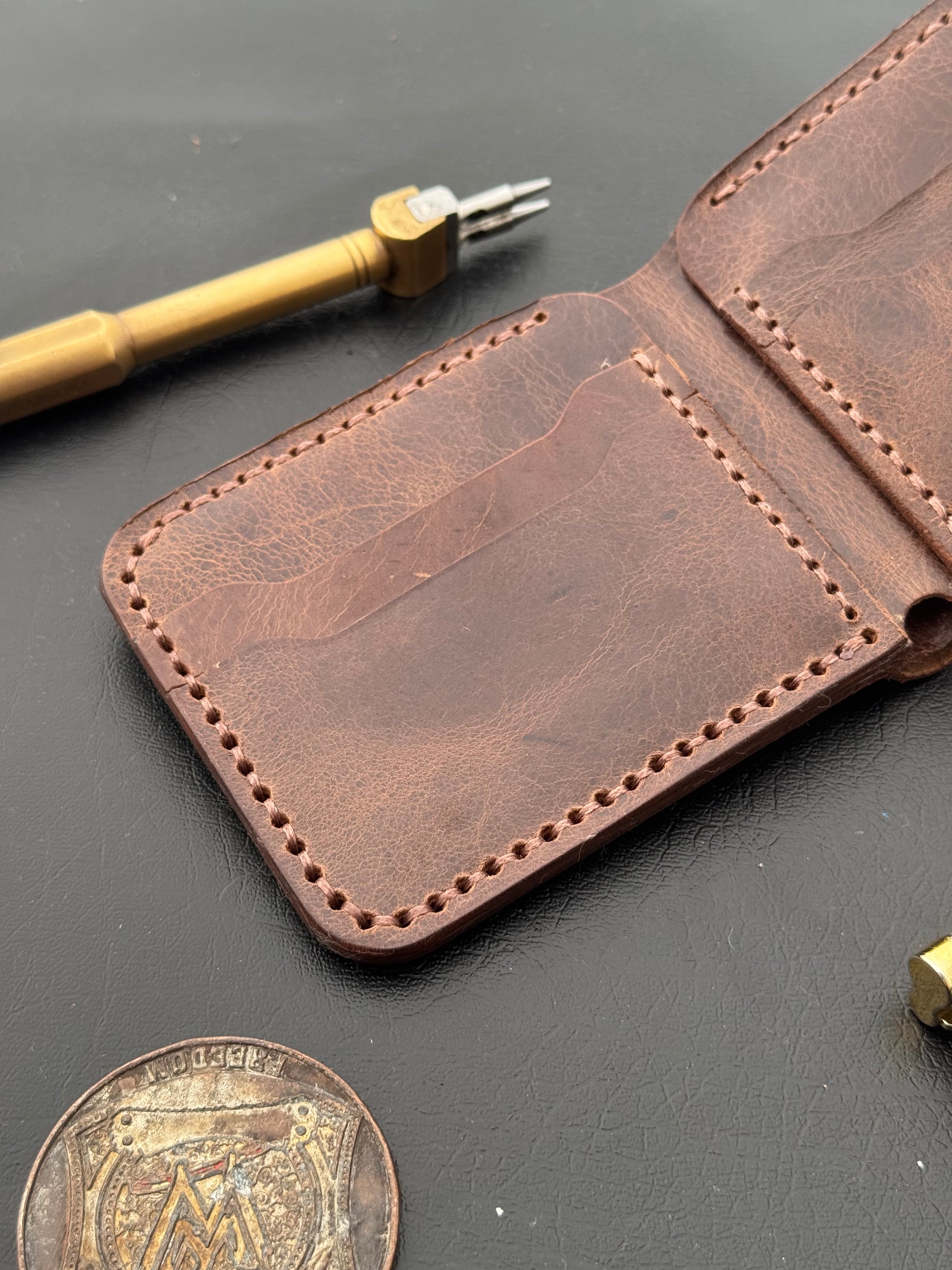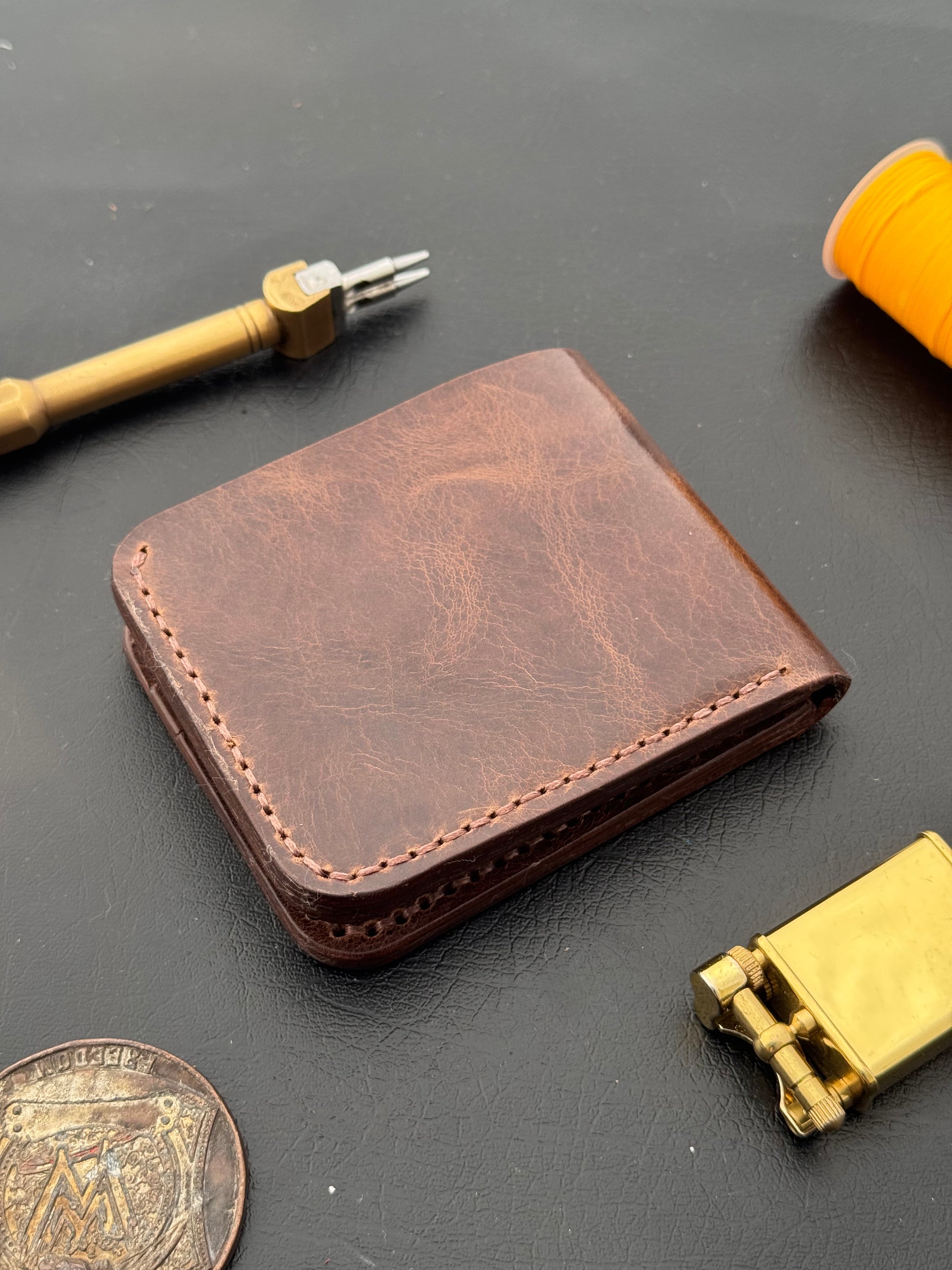 A slim, full-grain pull-up leather wallet made for people who want something simple, durable, and stylish without the bulk.
